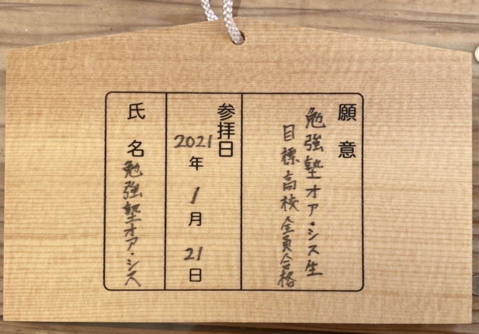 ※祈願の絵馬、ここに名前を書き込みました♪